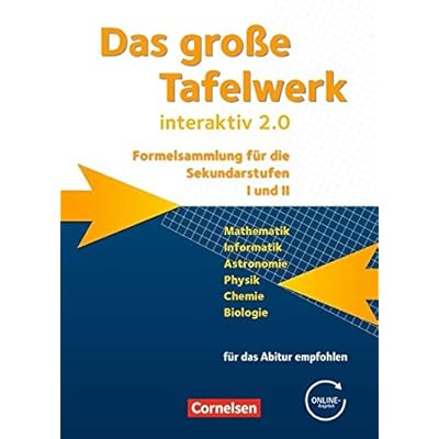 Informationen zur Reihe: Der traditionsreiche Klassiker, gründlich überarbeitet und zeitgemäß gestaltet Fachliche Schwerpunkte und allgemeine Bildungsziele des Schulunterrichts haben sich in den letzten Jahren gewandelt. Die Version 2.0 berücksichtigt neben Aktualisierungen und Optimierungen auch diese Veränderungen: Das bewährte Tafelwerk wurde überarbeitet und ergänzt. Für einen noch effizienteren Einsatz in der täglichen Schulpraxis sind die Kapitel zur Mathematik und Physik neu strukturiert. Das überarbeitete Inhaltsverzeichnis und das verbesserte Sachregister erleichtern es, Inhalte zu finden. Auf das erweiterte Online-Angebot mit Visualisierungen, Informationen, digitalen Periodensystemen und einer naturwissenschaftlichen Datenbank wird im Buch hingewiesen. Auch die Version 2.0 von Das große Tafelwerk interaktiv gibt es mit und ohne CD-ROM. Die CD-ROM enthält typische Beispiele, Grundaufgaben und Anwendungen und unterstützt so die Lernenden bei Hausaufgaben und Projekten.