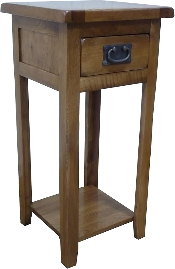 Rustic oak lamp table helping to create a cosy farmhouse feel in your living room with its naturally rustic appearance, this compact lamp table is bursting with character from the bottom of its tapered legs to its chunky lacquered top.